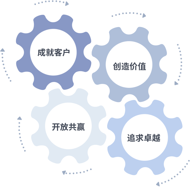成就客户是一切决策的出发点,创造价值是衡量所有工作的标准,追求卓越是创世红海做事做人的态度,开放共赢是创世红海的格局也是最终的结果。价值观的齿轮环环相扣,推动着组织里的每个人不断向前。